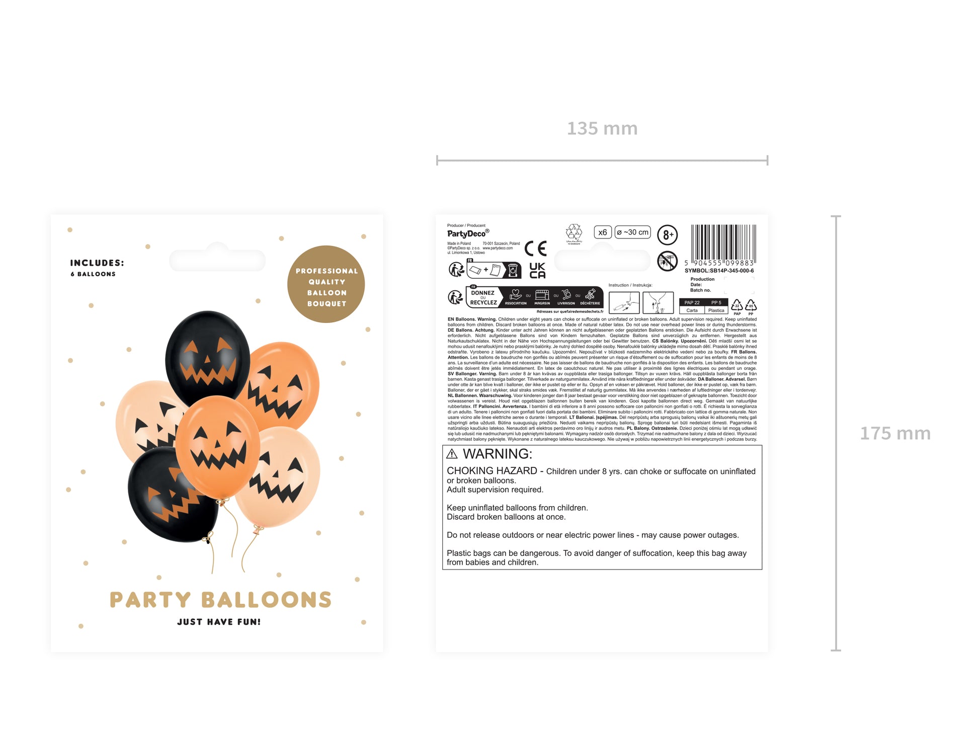 Każdy balon posiada dwustronny nadruk jak wycięcia w halloweenowej dyni, co sprawia, że świetnie prezentuje się zarówno solo, jak i w bukiecie balonowym. Zestaw doskonale nadaje się do dekoracji sali, domu, sklepu czy imprezy tematycznej – będzie idealnym uzupełnieniem aranżacji na Halloween, jesienne przyjęcie lub klimatyczne sesje zdjęciowe.