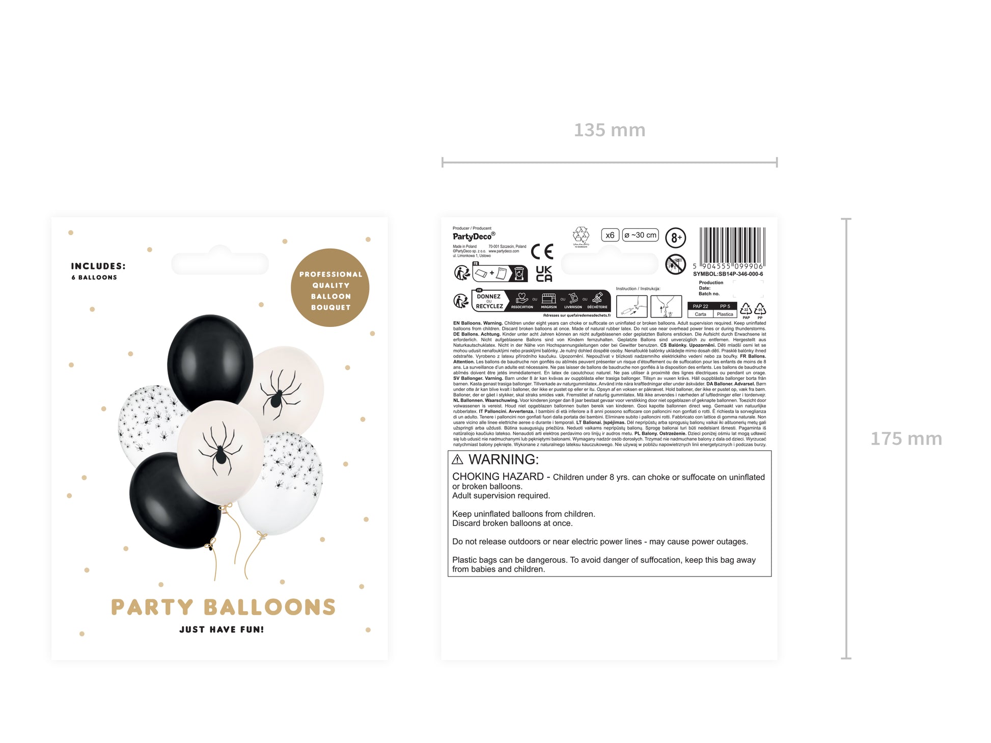 Dodaj odrobinę grozy i klimatu Halloween dzięki zestawowi balonów lateksowych Strong z nadrukiem pająków! W komplecie znajduje się 6 balonów o średnicy ok. 30 cm, w trzech wariantach: